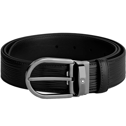 Черный кожаный ремень с подковообразной пряжкой 35мм от магазина премиальных ручек Premium Pens в Коломне.
